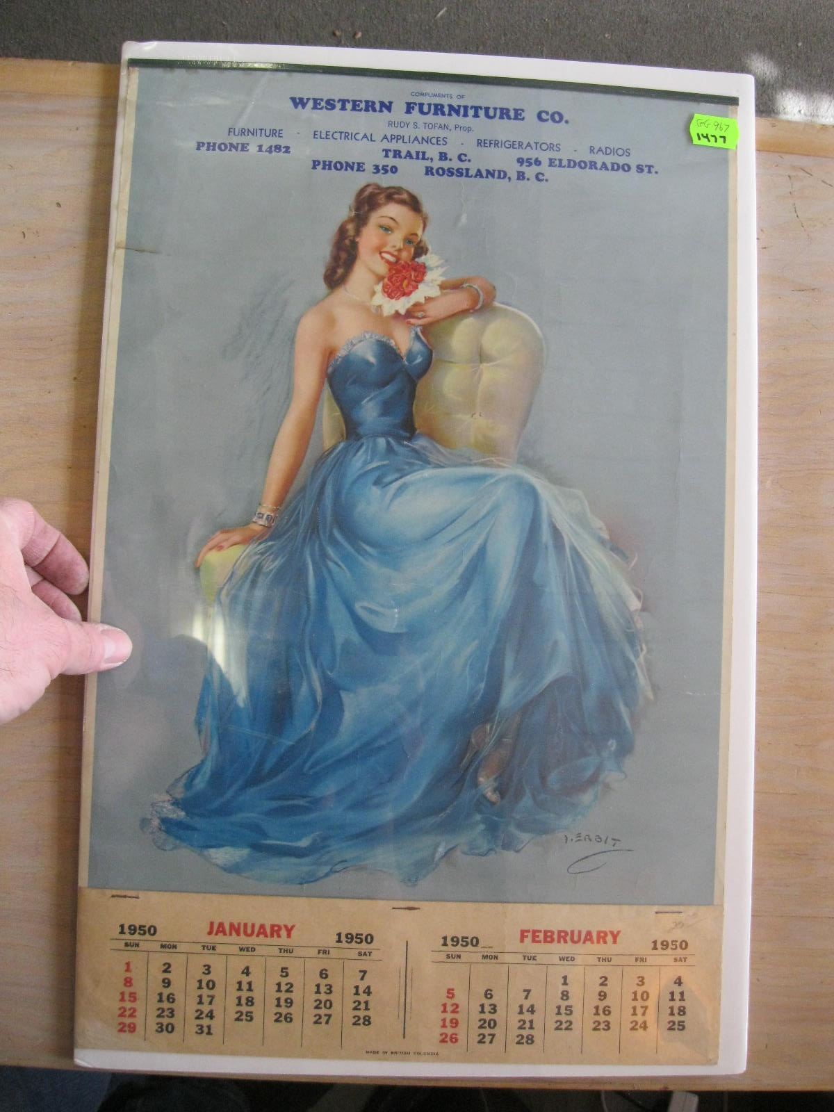 WESTERN FURNITURE TRAIL, BC., 1950 CALENDAR Dodds Auction