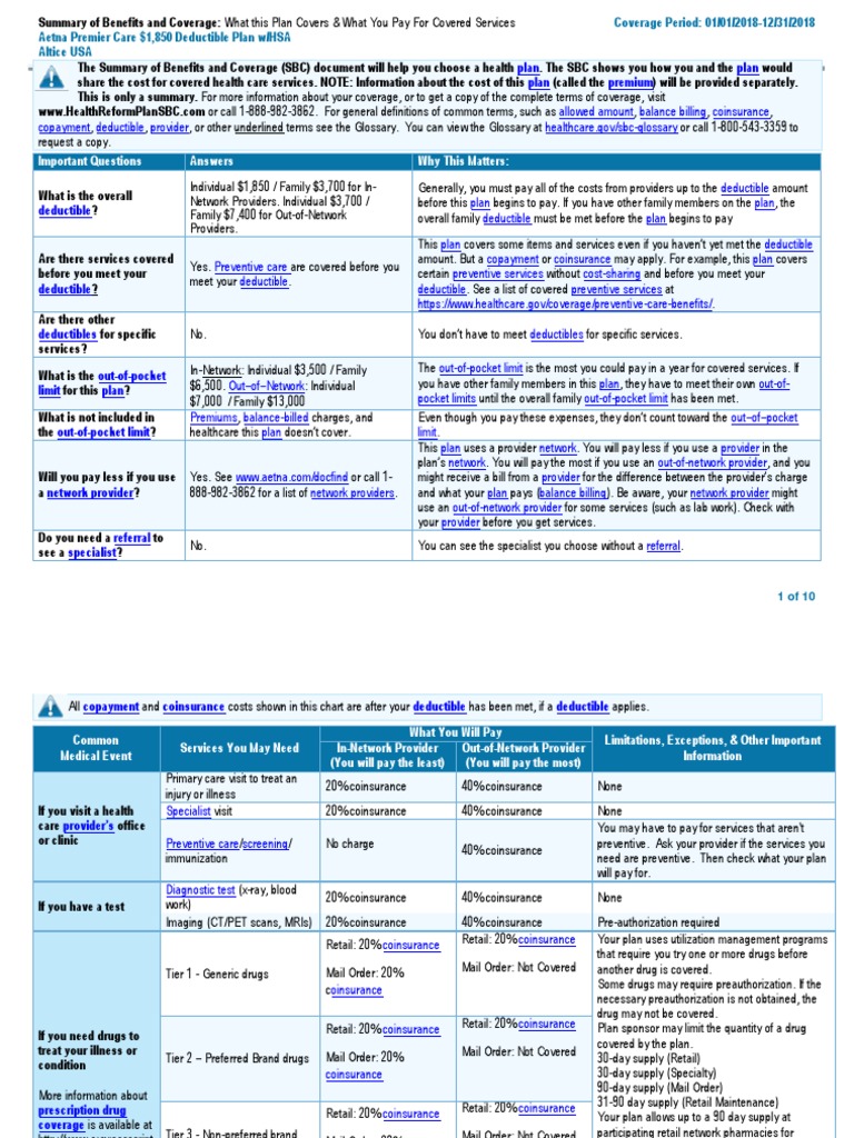 Aetna 1850 HD Plan Deductible Patient