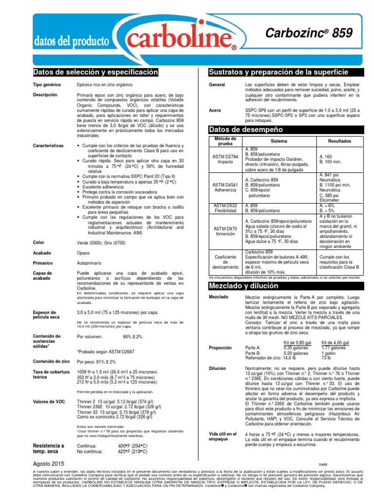 Carbozinc 859 Data Sheet - Web performance data test method system results astm d2794 impact a. 859/ polyurethane gradner impact tester,. Web carbozinc 859 has less than 3 lbs/gallon (359.5 g/l) voc (thinned) and is used extensively in virtually all industrial.