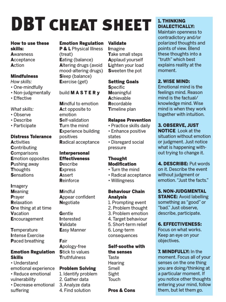 DBT Skills Cheat Sheet practical, pragmatic ways to improve your life