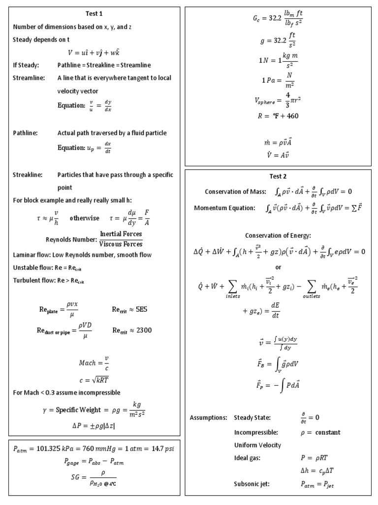 Fluid Dynamics Cheat Sheet Fluid Dynamics Reynolds Number