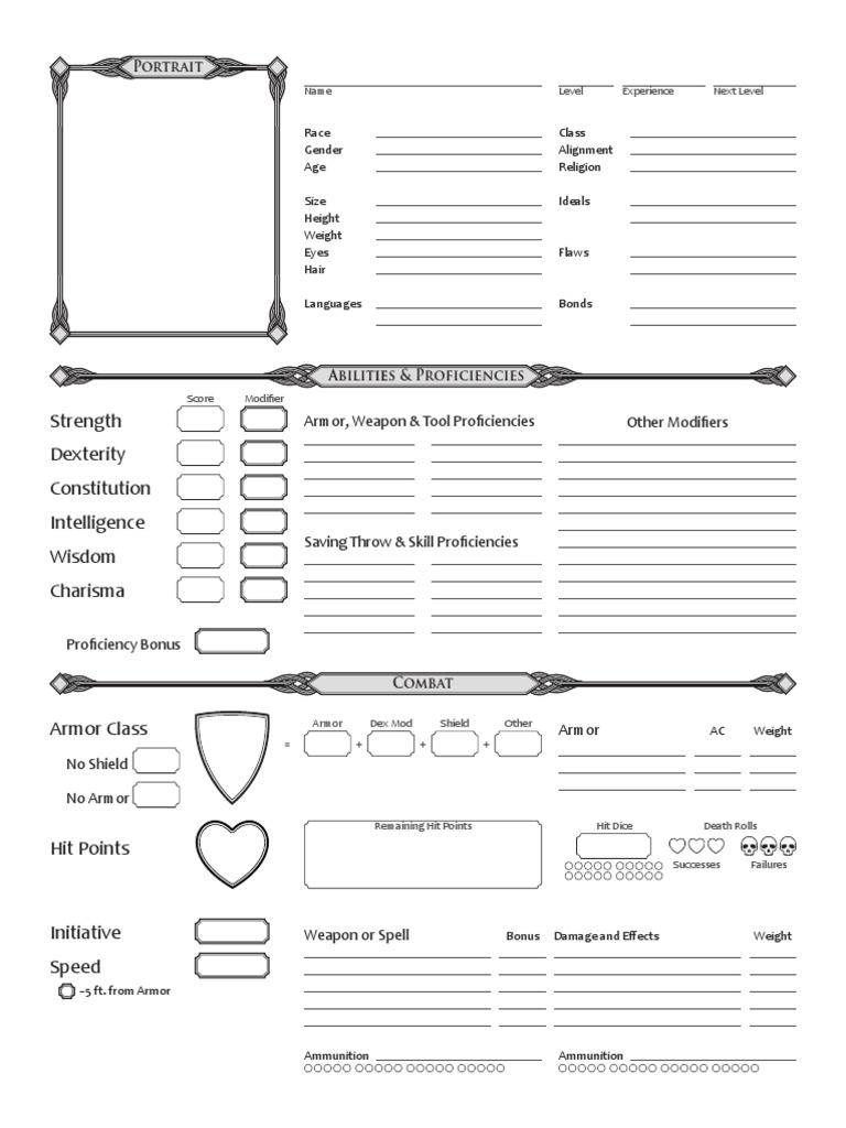Printable D&d 5e Character Sheet