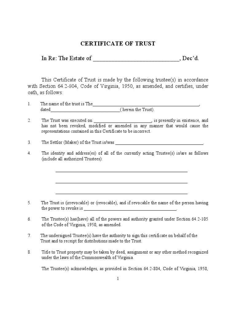 Certificate of Trust Form Fill Out and Sign Printable PDF Template