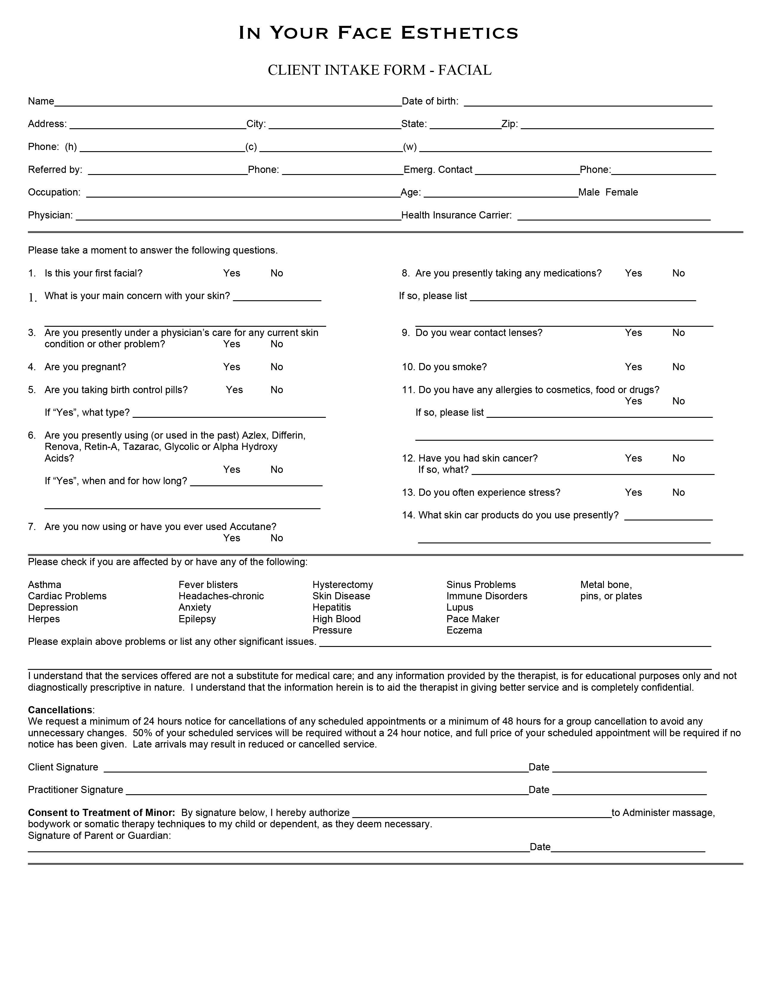 Web download diese templates for esthetician client inlets to improve your paperless intake litigation and hipaa compliance. Web esthetician (facial) client intake form fill now click to fill, edit and sign this form now! This intake form can be used to gather. Web download are templates for esthetician client intakes to optimize your paperless intake process and hipaa compliance. Web.