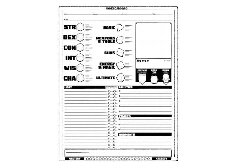 ICRPG Character Sheet (Landscape) INDEX CARD RPG RUNEHAMMER