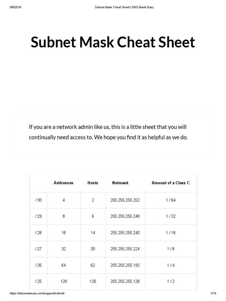 Mask Cheat Sheet _ DNS Made Easy Wide Area Network Ip Address