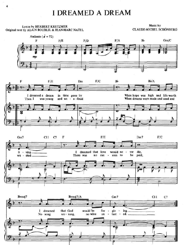 I Dreamed a Dream Le Mis Sheet Music