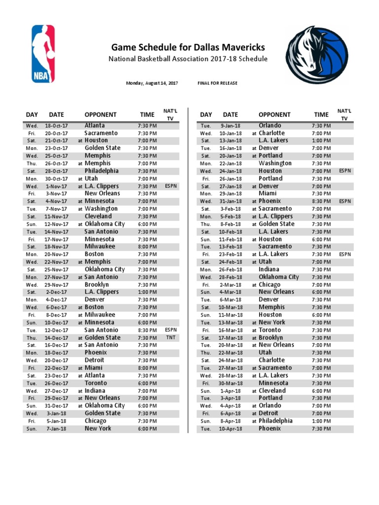 Mavs 201718 Schedule Athletic Sports Ball Games Free 30day