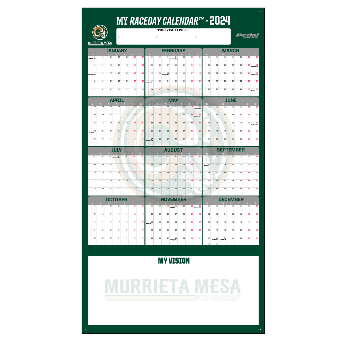 Murrieta Mesa 2024 GIANT MY RACEDAY CALENDAR PEDAL Industries