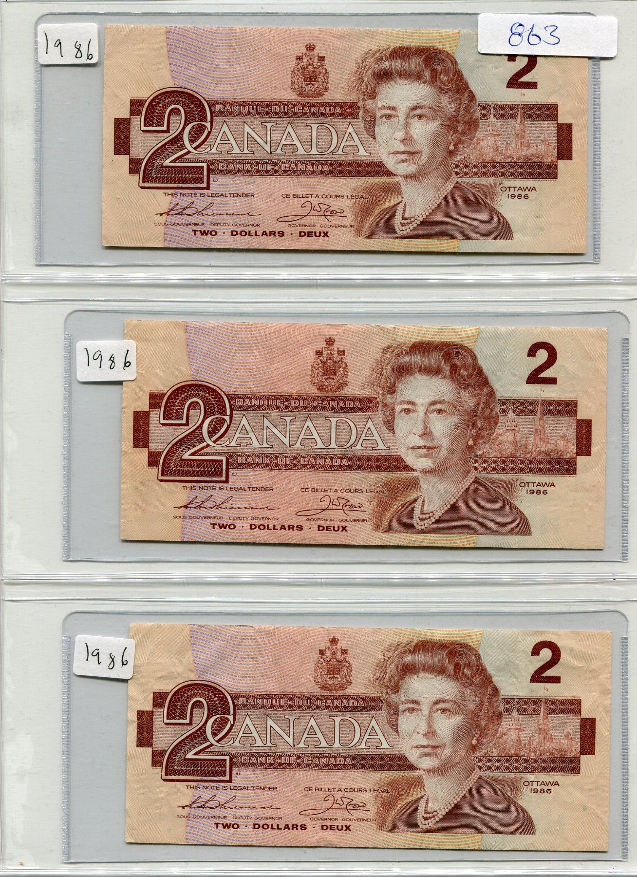 UNCUT SHEET OF 1986 CANADIAN 2 DOLLAR BILLS (UNCIRCULATED)