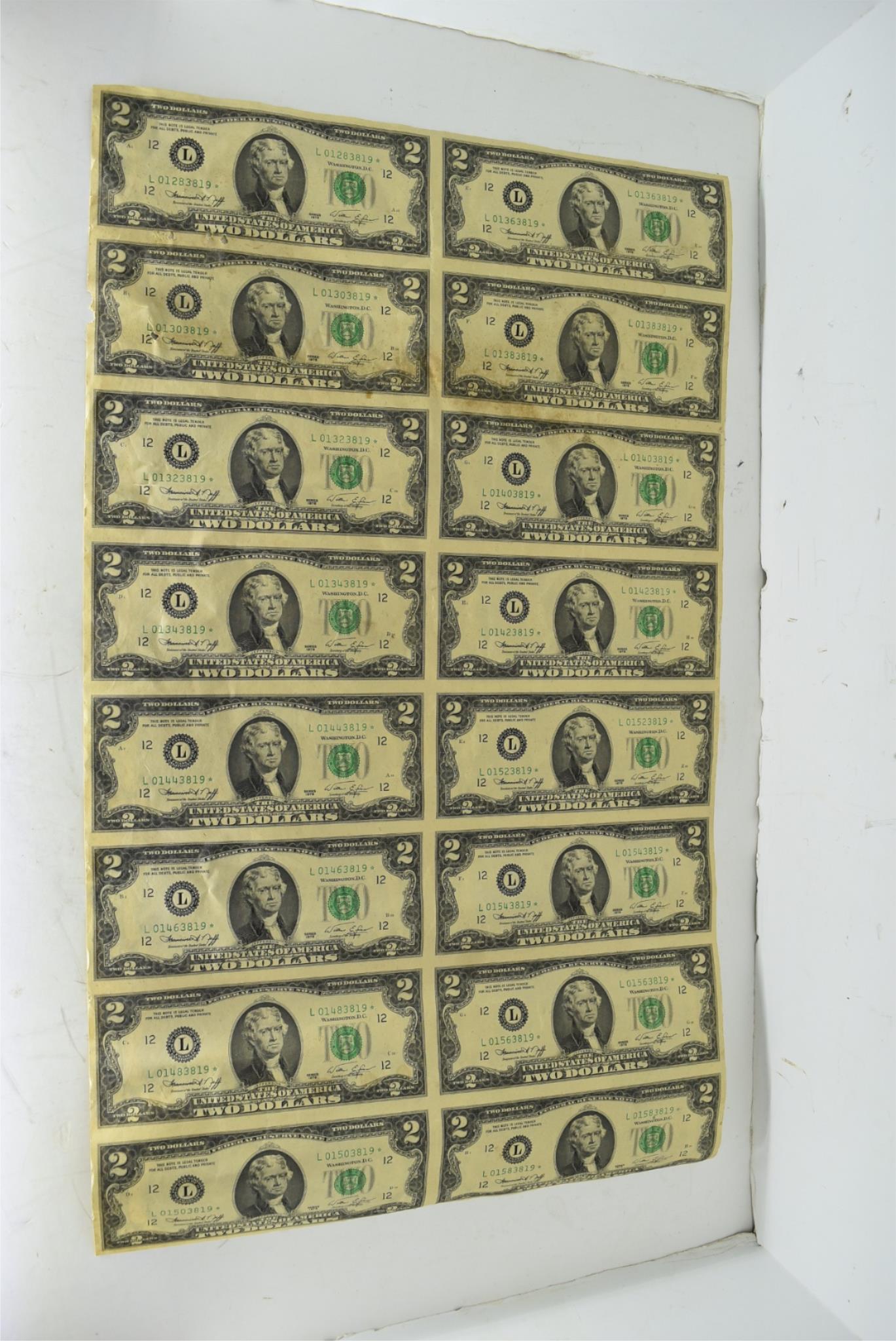 2009 2 Uncut Sheet 32 Subject Two Dollar Bills United States Currency