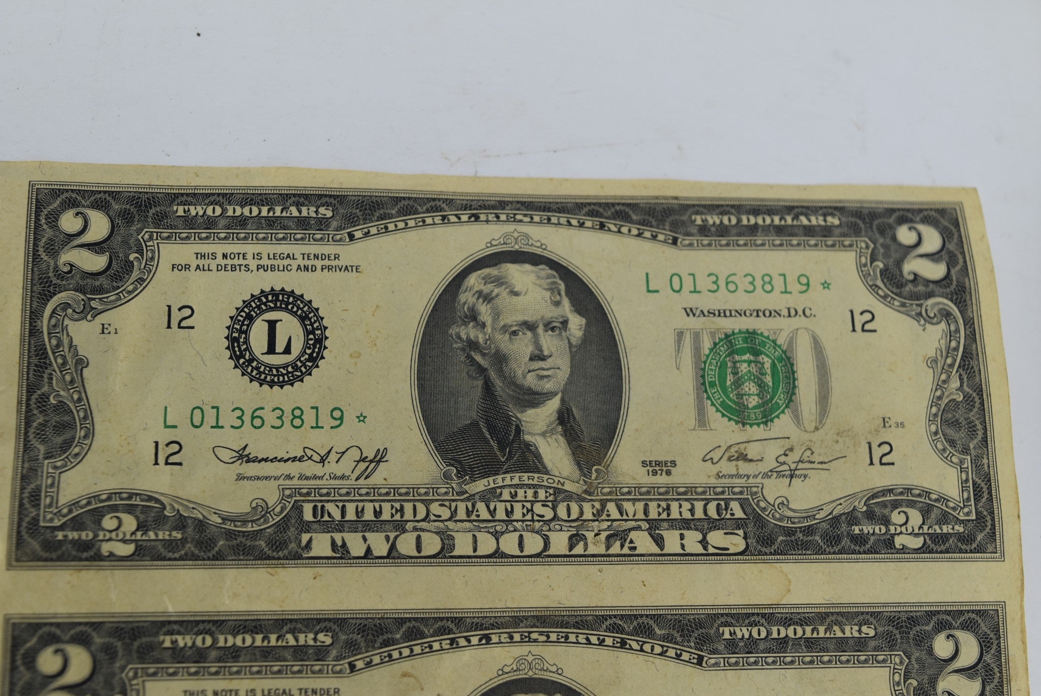 Uncut 1976 Star Note Two Dollar Bill Sheet EBTH