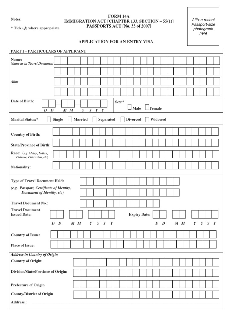 Form14A Singapore Visa Application Form Travel Visa Passport