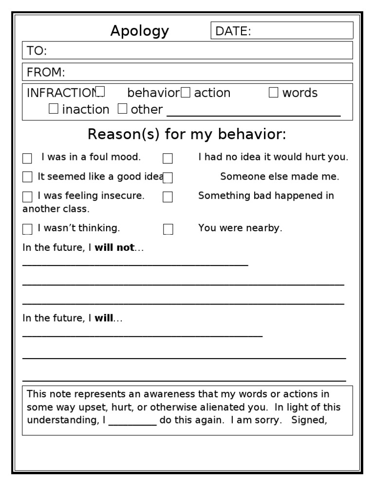 BOTIAS APOLOGY FORM From Date Reason for behavior The media