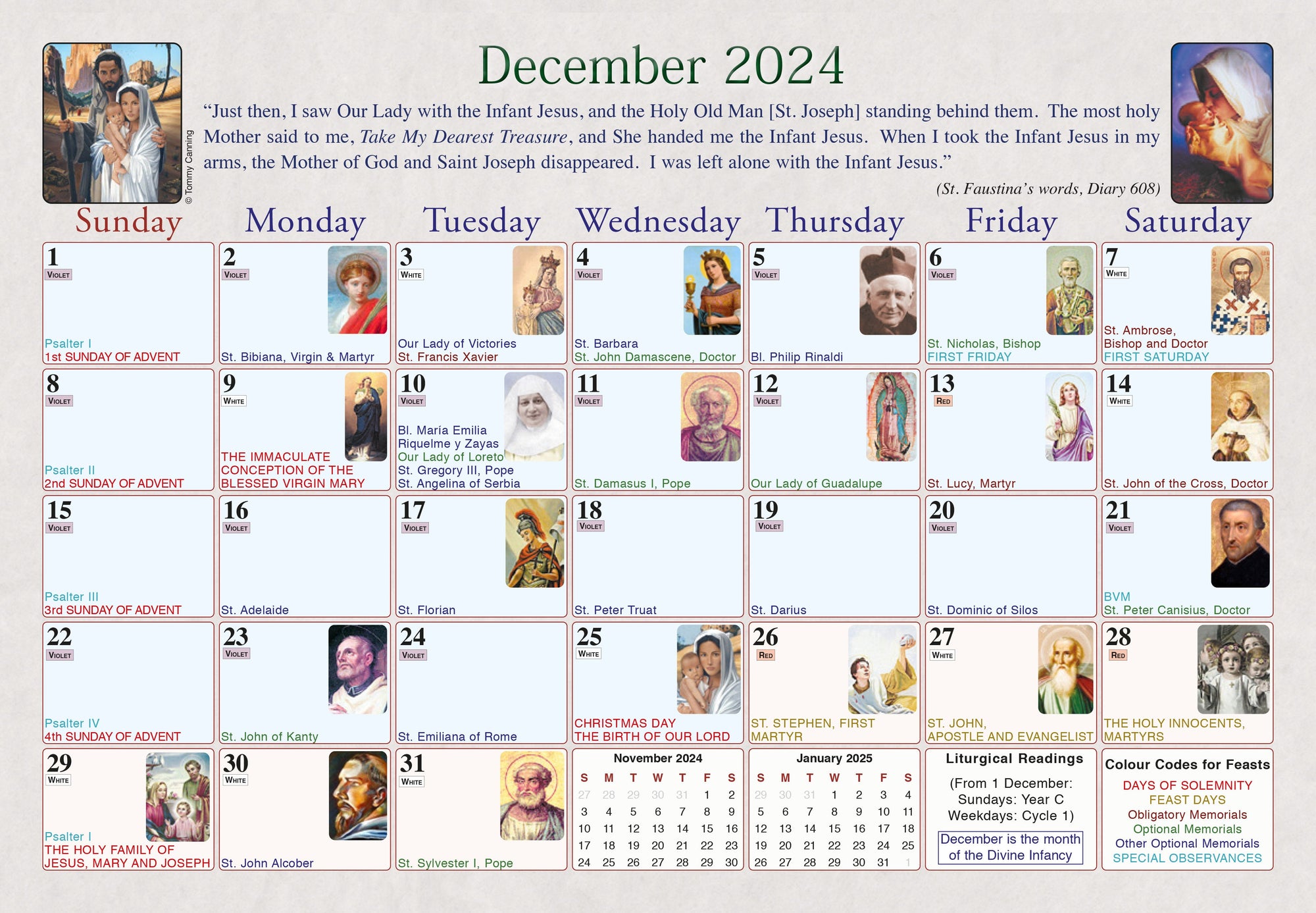 Divine Mercy Calendar Wall 2024 Cardinal Newman Faith Resources Inc