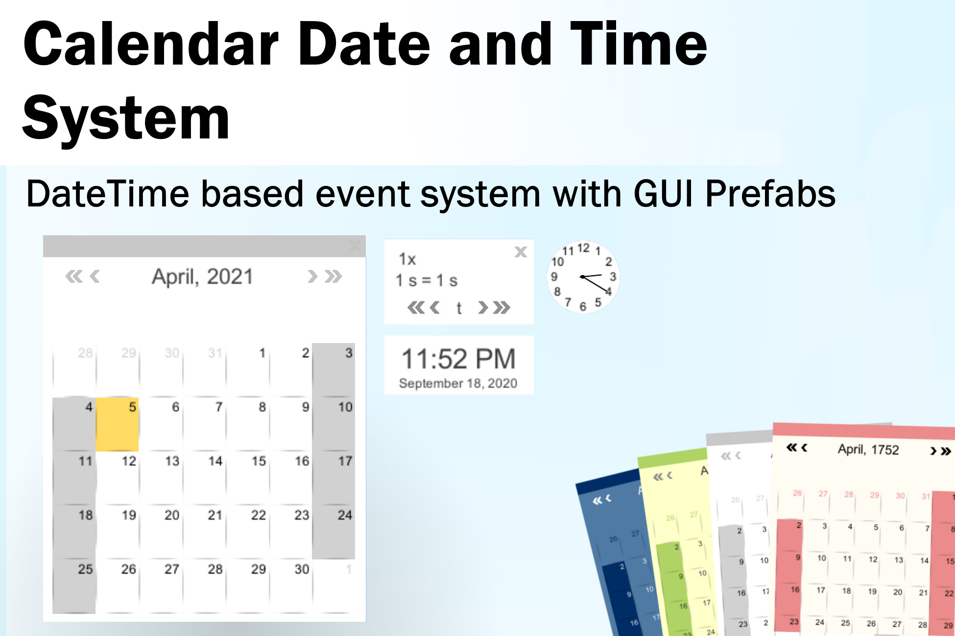 Calendar Date and Time System GUI Tools Unity Asset Store