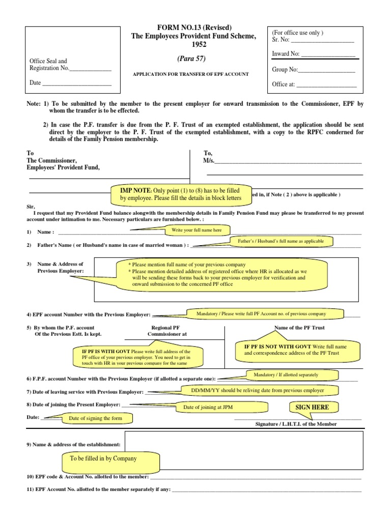 PF Transfer in Form_Form No. 13 SAMPLE Employee Government